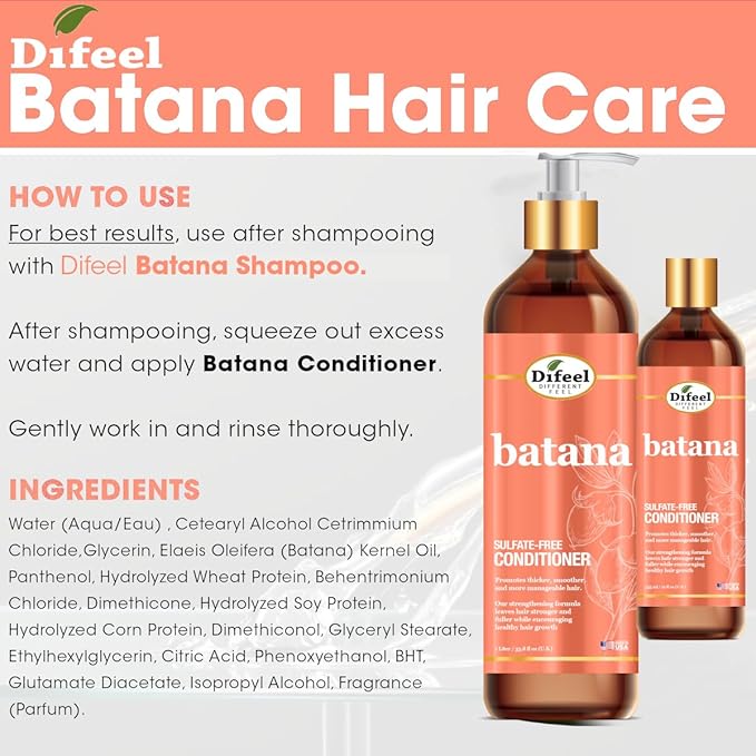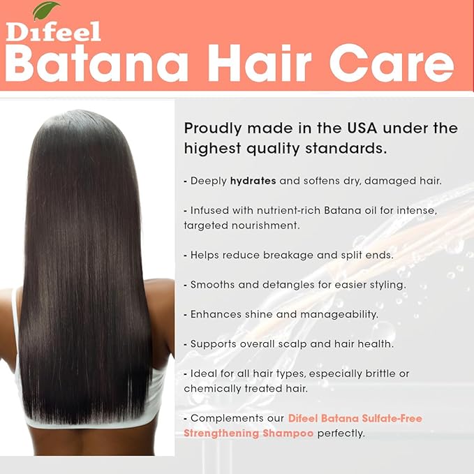 • Strengthening Batana Hair Oil Conditioner - Revitalize and restore your hair with Difeel Batana Sulfate-Free Conditioner—an indulgent formula crafted to deeply hydrate, detangle, and reinforce weak, brittle strands.