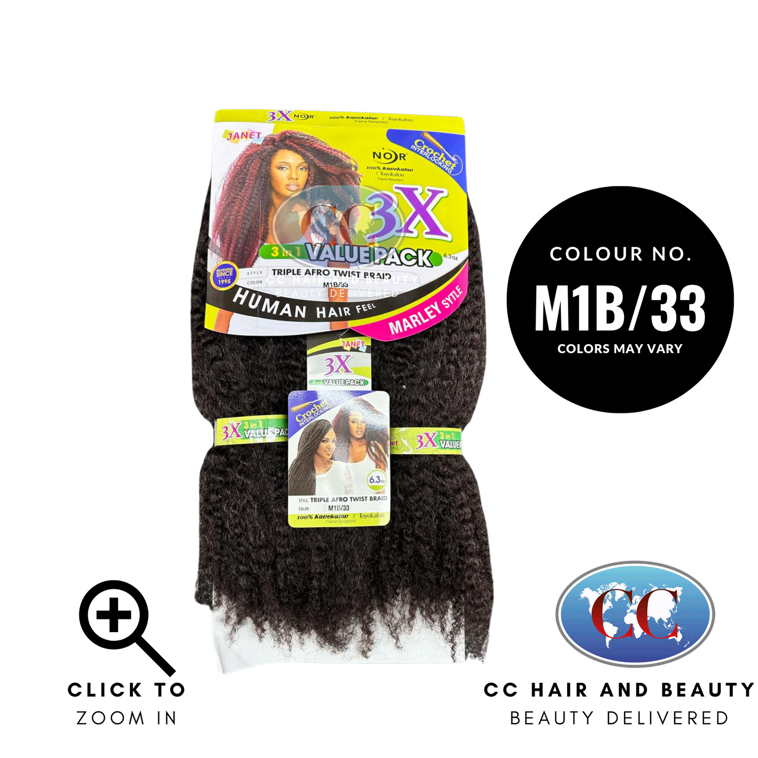 Janet Noir Triople Afro Twist Braid 3X - 3 in 1 Value Pack