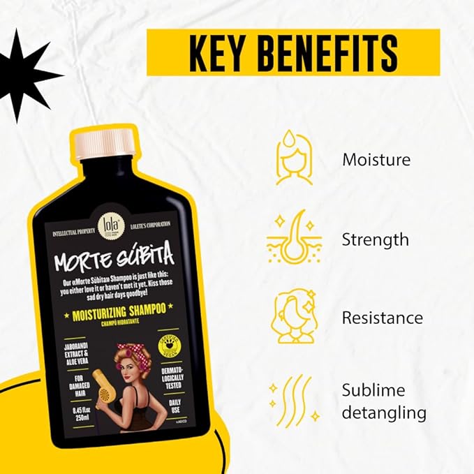 Lola From Rio Morte Subita Moisturizing Shampoo 250ml deeply hydrates and nourishes hair, helping to restore moisture balance and softness. Ideal for dry or damaged hair, it gently cleanses without stripping essential oils, leaving hair smoother, more manageable, and visibly healthier. Its expert formulation supports long-lasting hydration and enhances natural shine