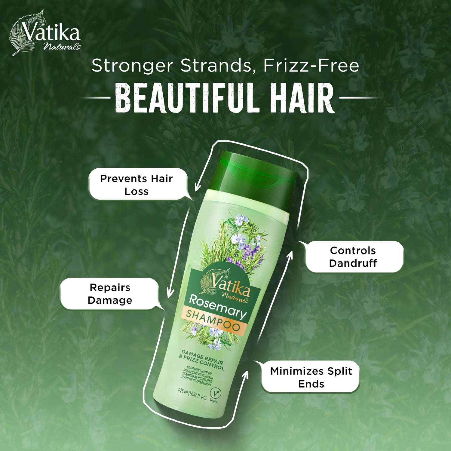Vatika Natural Rosemary shampoo, 425 ml, Shampoo for all Hair types, Anti dandruff Promotes Growth, Nourishes & Conditions Hair, oil